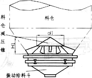 慣性振動給料斗在設(shè)計計算中已考慮了一定的倉壓,但建議在料倉內(nèi)物料高度大于2m時,在料倉內(nèi)安裝料倉減壓錐,以確保振動給料斗更穩(wěn)定地工作,特別是確保其給料精度更趨準確。料倉減壓錐應焊接在料倉內(nèi),并保持平穩(wěn)。料倉減壓錐安裝圖,安裝尺寸如下: